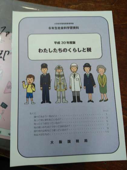 東住吉税務署の方に来ていただき、6年生に税金の使われ方や税の仕組みなどについてお話をしrていただきました。前半は税にまつわる話をアニメーションで鑑賞しました。そのあとは税に関する冊子をもとにして税金がどのように集められてどのように使われているのかなどについて学習しました。特に、本物ではなかったですが1億円のお札があればこれだけですよ、と提示された時は子どもたちから「おお!」と声があがっていました。