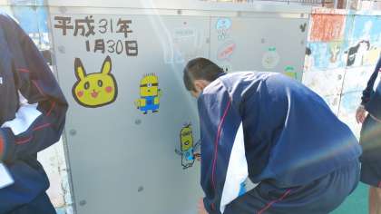 1月30日 職業体験 プール壁面塗装