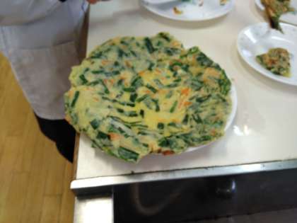 外国人文化にふれる学習の一環で、4年生が韓国の料理で有名なチヂミを家庭科室で調理実習しました。たいへんおいしくできあがり、みんなおいしそうに食べていました!!