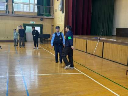 今日の放課後には、東住吉警察のご指導のもと、防犯訓練に取り組みました。