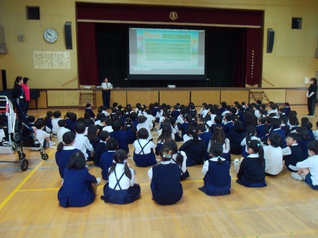 2時間目に学習した1・2・3年生は、道路の歩き方を中心に、交通ルールの大切さについて学びました。