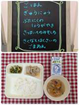 ☆ごはん ☆牛乳 ☆豚肉のしょうが焼き ☆さつまいものみそ汁 ☆きくなとはくさい...
