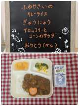 ☆冬野菜のカレーライス ☆牛乳 ☆ブロッコリーとコーンのサラダ ☆黄桃(カット缶...
