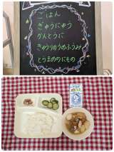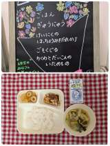 ☆ごはん ☆牛乳 ☆鶏肉の八丁みそだれかけ ☆五目汁 ☆ちくわとだいこんのいため...