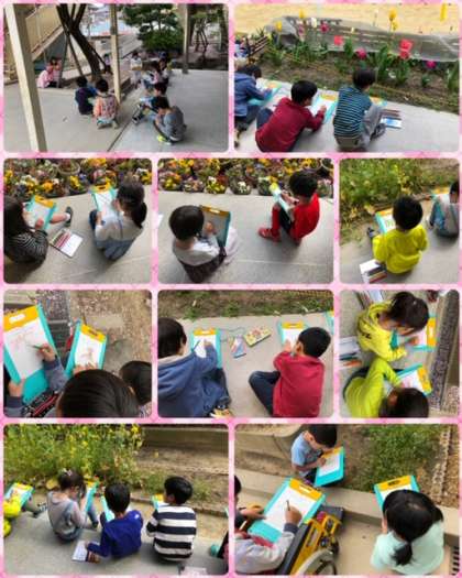 2年生が生活科の授業で『はるをみつけよう』をテーマに校内の春をみつけて観察していました♪♪♪