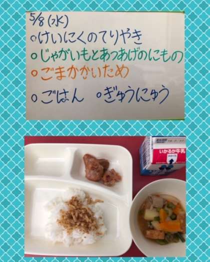 『鶏肉のてり焼き』は、鶏肉に、料理酒、砂糖、みりん、こい口しょうゆで下味をつけ、焼き物機で焼いています☆☆☆