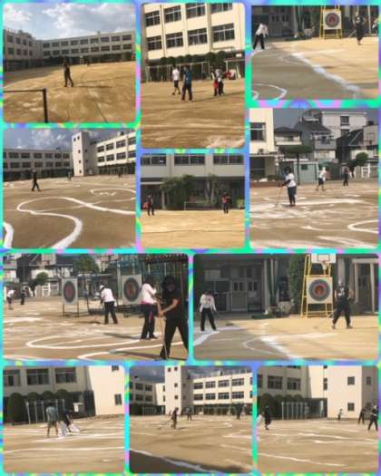 運動場に袋に入ったにがりをまき、ほうきなどでのばしてから水をまきます(^o^)