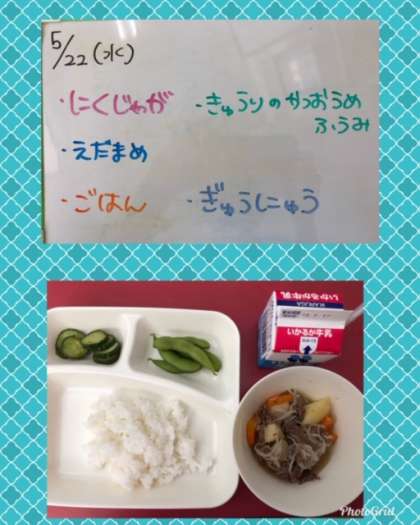 『肉じゃが』は、牛肉、じゃがいも、たまねぎ、にんじん、糸こんにゃくを使用し、甘辛く味付けしています☆☆☆