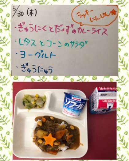 豆が苦手な児童もカレーに入れる事で食べやすくなっています♪♪♪