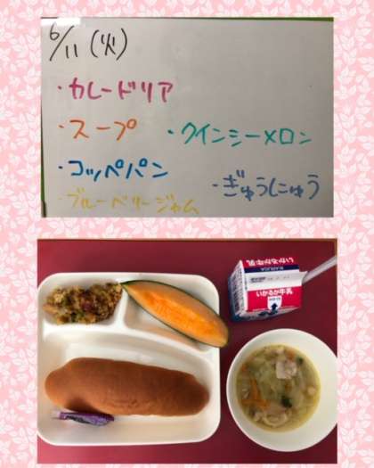 『スープ』は、豚肉で旨みを出し、じゃがいも、キャベツ、にんじん、コーン、パセリを使用し、彩りよく仕上げています☆☆☆