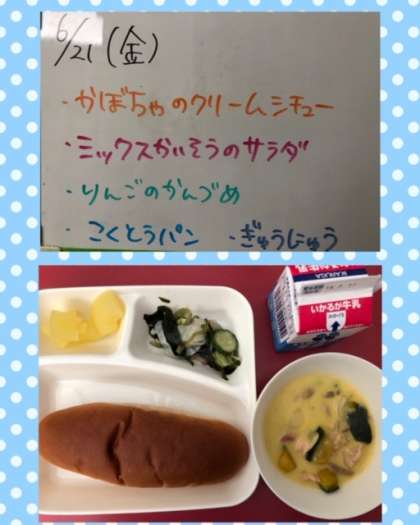 『かぼちゃのクリームシチュー』は、鶏肉、ベーコンを主材に、旬のかぼちゃを使用した子ども達に大人気の献立です☆☆☆