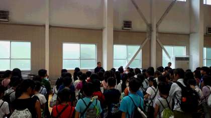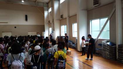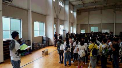 開舎式で宿舎の方のお話をしっかり聞いています。
