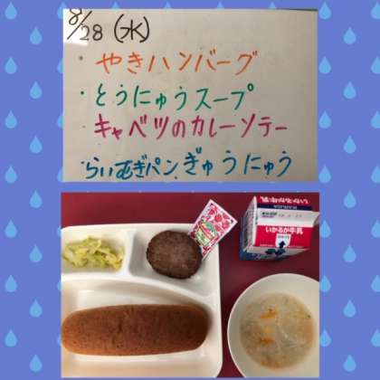 『焼きハンバーグ』は、焼き物機で焼き、ケチャップをかけていただきます☆☆☆