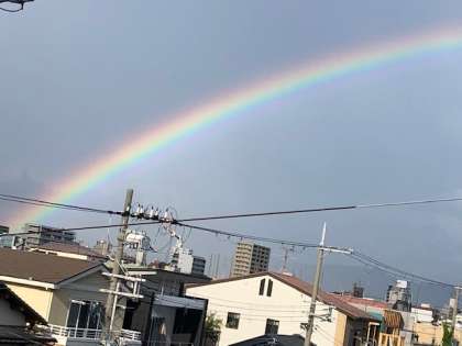 低学年の下校時間に大雨の時間と重なってしまいましたが、みんなが下校した後、雨もやみ空を見ると・・・綺麗な虹がかかっていました☆☆☆