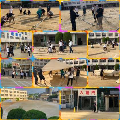 今日の放課後、入退場門の設置とテント設置を行いました☆☆☆