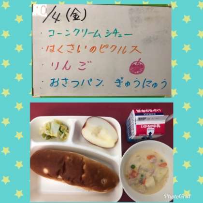 『コーンクリームシチュー』は、小麦アレルギーのある児童も食べる事が出来るように、上新粉を使ってとろみを出しています☆☆☆