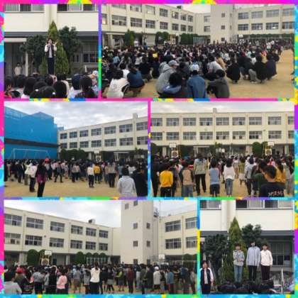 途中雨が降ってきた為、校長先生のお話は来週することになりました(^o^)