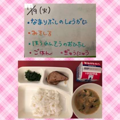 『なまりぶしのしょうが煮』は、ミニバットになまりぶしをいれ、せん切りのしょうがを加えた調味液を加えて焼き物機で煮ています☆☆☆