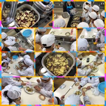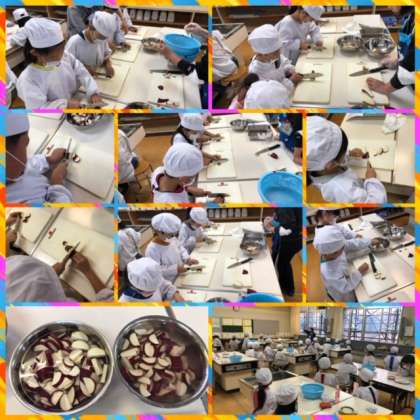 初めて家庭科室で、まな板と包丁を使って、さつまいもを切りました!!!
