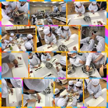 先生から、包丁の使い方を聞いてから、班ごとに切りました♪♪♪
