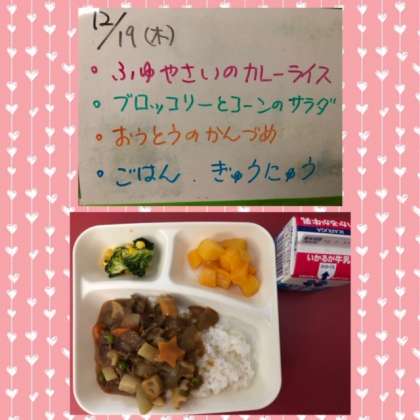 『冬野菜のカレーライス』は、子ども達に大人気のカレーライスに、旬のだいこん、れんこんなどを使用しています☆☆☆