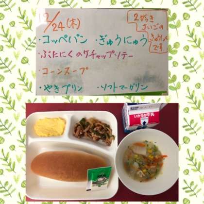 『コーンスープ』には、コーンとスイートコーン(缶)のほか、鶏肉やはくさい、にんじん、青みにパセリを使用しています☆☆☆