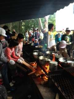 野菜を切ったり火おこしをしたりと、仲間と協力しながら活動しています。