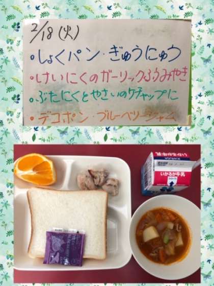 『豚肉と野菜のケチャップ煮』は、豚肉を主材にじゃがいも、たまねぎ、キャベツ、にんじん、青みにむき枝豆を使用し、ケチャップ、チキンブイヨンなどで味つけした煮ものです☆☆☆