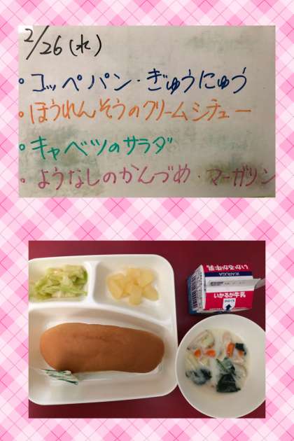 『ほれんそうのクリームシチュー』は、子ども達に大人気の献立です☆☆☆