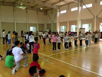 クイズ大会のあとは、広ーーーい体育館で南田辺オリンピックが始まりました。
