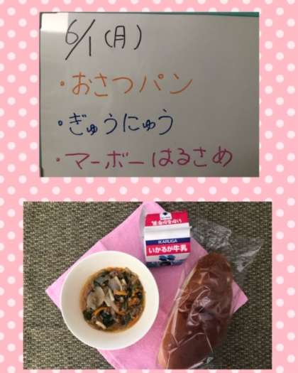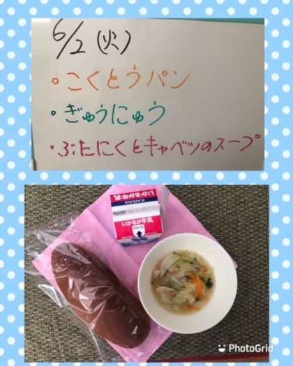 パンと牛乳と大おかず一品ですが、みんな久しぶりの給食に大喜びでした☆☆☆