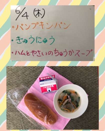 昨日の『ハムと野菜の中華スープ』は、ハム、しいたけで旨みを出し、青みにニラを使い、彩りよく仕上げました♪♪♪