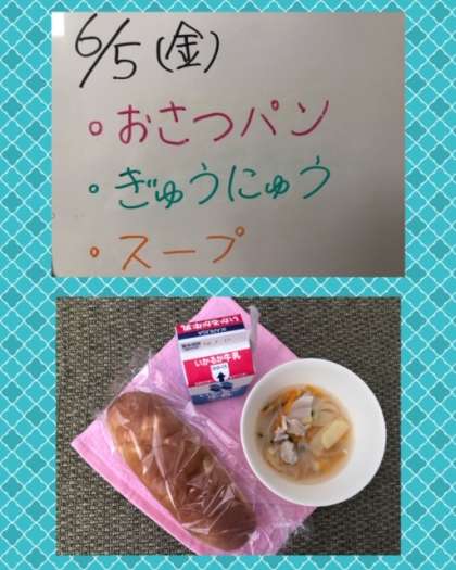 本日の『スープ』は、鶏肉を主材に、じゃがいも、たまねぎ、にんじん、コーン、仕上げにパセリを使用した洋風の汁ものになっています!!!