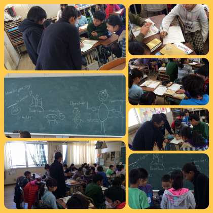 6年生のC−Netによる英語の授業では、日本の桃太郎のお話を英語を使って表現しました!!!