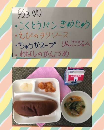 『中華スープ』は、焼き豚、しいたけでうまみを出し、たけのことにらで中華らしさをだしたスープです☆☆☆