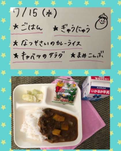 『夏野菜のカレーライス』は、夏野菜のかぼちゃ、なす、トマト(缶)、ピーマンを使用した夏を感じることが出来る一品です!!!