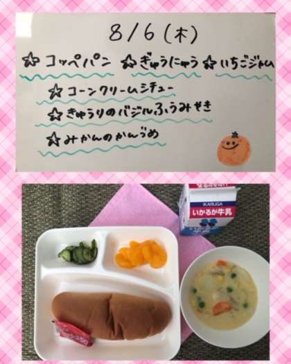 『コーンクリームシチュー』は、鶏肉を主材に、スイートコーンのクリーム缶の甘みをいかし、バターを使ったホワイトルゥで仕上げたシチューです♪♪♪