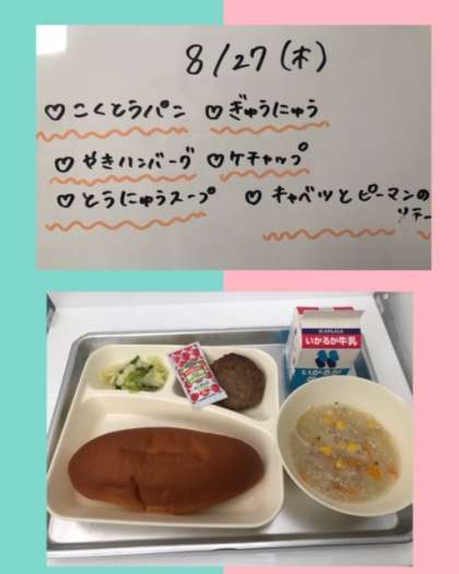 『焼きハンバーグ』は、焼き物機で焼いたハンバーグにケチャップをかけて食べます☆☆☆