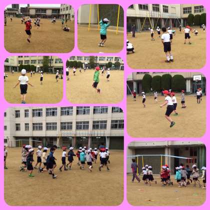 1年生はボール蹴りを、2年生はなわとびを使って授業をしました!!!