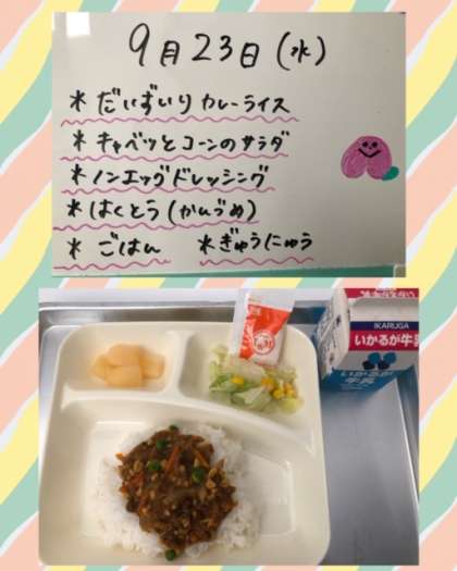 『大豆入りキーマカレーライス』は、牛ひき肉、豚ひき肉と大豆(ひきわり)を使用し、小麦アレルギーの児童も食べられるように、米粉のカレールゥを使っています☆☆☆