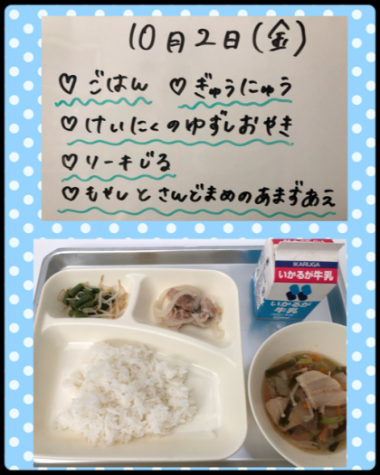 『鶏肉のゆず塩焼き』は、鶏肉を、塩、ゆず果汁で下味をつけ、たまねぎと混ぜ合わせて焼き物機で焼きます☆☆☆