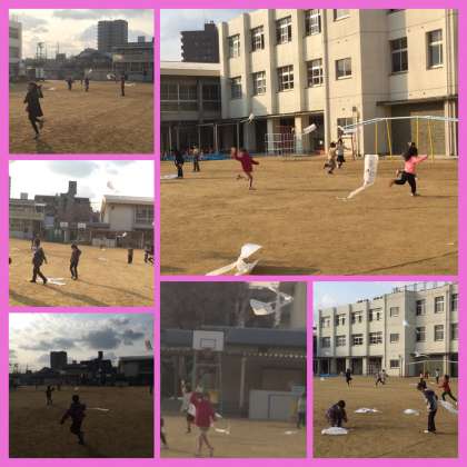 自分たちで作ったタコを運動場で走り回りながら上手にあげていました☆☆☆