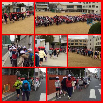 9時40分長居競技場に向けて全校児童が出発しました☆☆☆