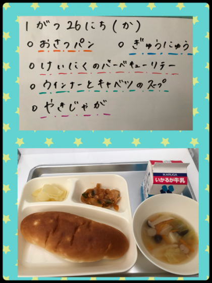 『ウィンナーとキャベツのスープ』は、ウィンナーを主材に、キャベツ、にんじん、しめじ、青みにグリンピーズを使ったスープです☆☆☆