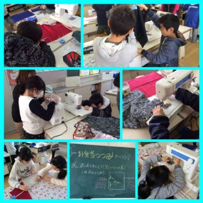 ミシンを使ってスムーズに作り上げてる児童・・・悪戦苦闘している児童・・・