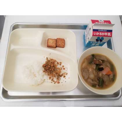 紅ざけフレークといりごま、青のりを炒って味付けした、ご飯によくあう一品です。