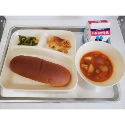 フランスの伝統的な焼き菓子です。クラフティは、フランス語で「いっぱいつめる」という意味があり、くだものをたくさん入れてつくられます。今日の給食のクラフティは、りんごの缶詰を使っています。