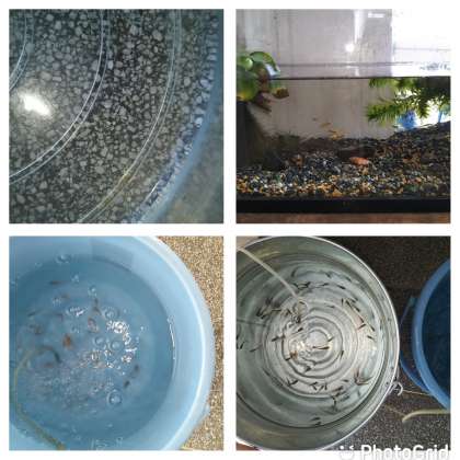 5年生がメダカを育てていきます。オスとメスを分けて、水槽をきれいにして、育てていきます。