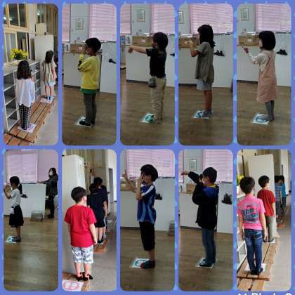 3年1組と3年2組の視力検査がありました。待っている間も静かに並んで待っていました。