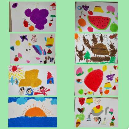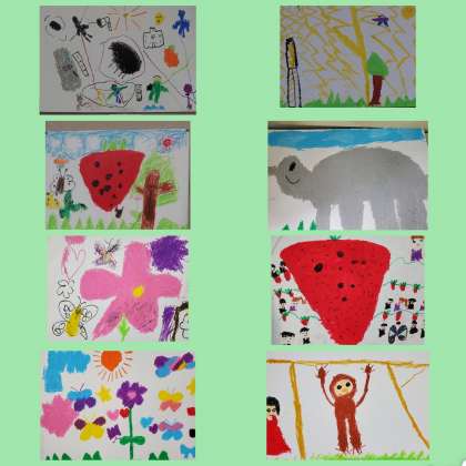 1年生の教室後ろの掲示です。「すきなもの」を描きました。